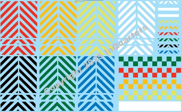 InQuarters brand decals are the finest quality commercially screen printed water slide decals for the hobby industry. Designed and marketed for hobbyists and model kit builders, these decals are printed by the nation's leading decal printer, Microscale. You are ensured of the highest quality and a guaranteed product. I can not alter or change the sheet design, and I can not offer custom single sheet or one of a kind printing. I can not print these decals to another scale. All ordering is done via email.